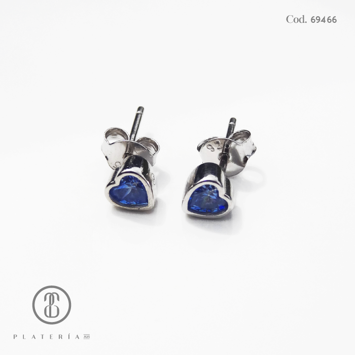 ARETE RODINADO CORAZON 5.5MM AGUAMARINA PLATA.925