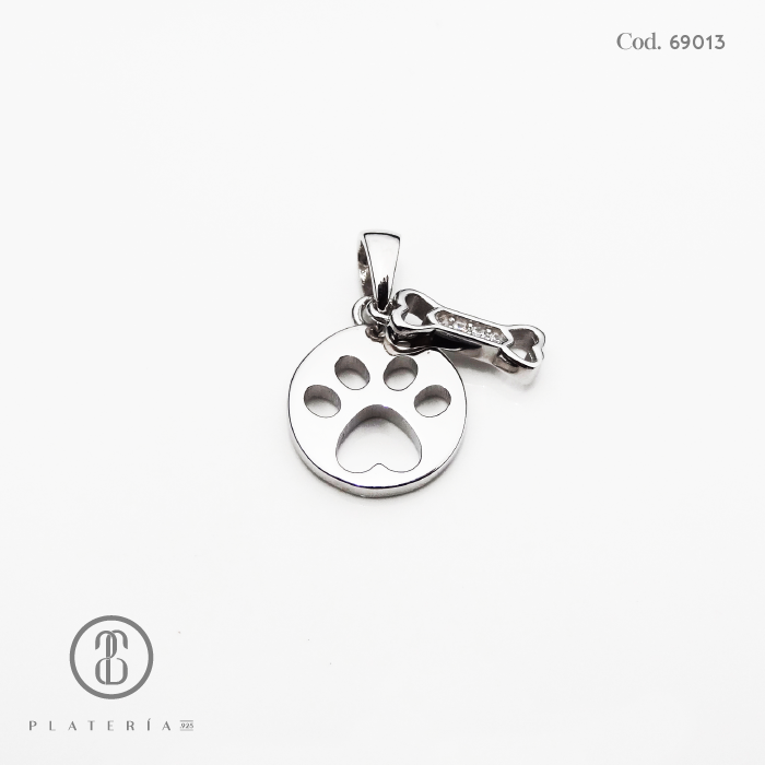 DIJE RODINADO PLACA Y HUELLITA PLATA.925