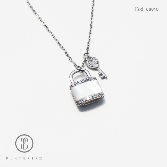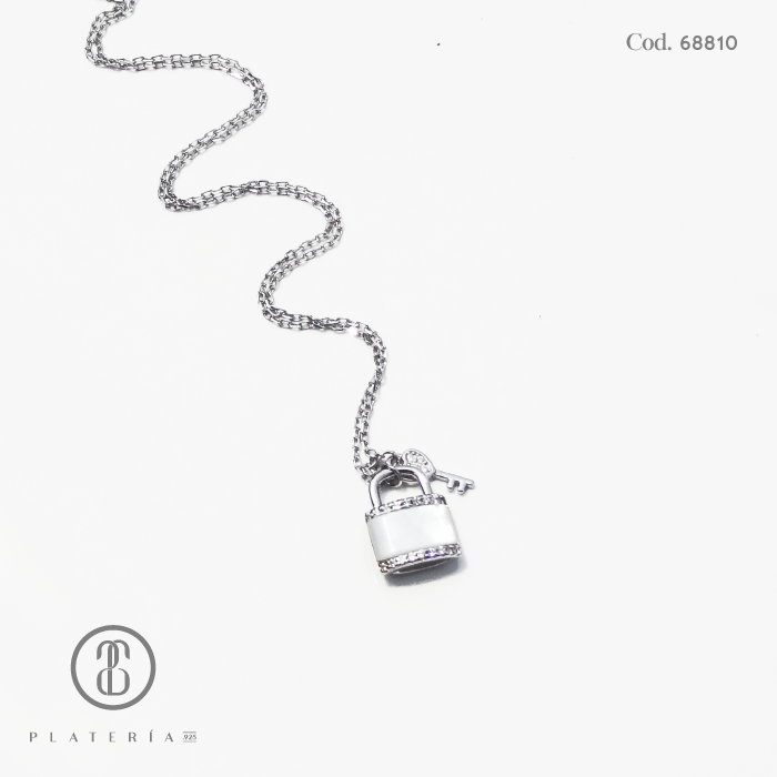 GARGANTILLA RODINADA CANDADO NACAR PLATA.925