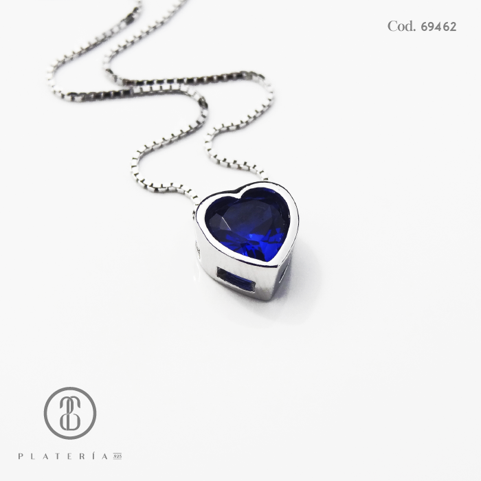 GARGANTILLA RODINADA CORAZON 6MM AZUL PLATA.925
