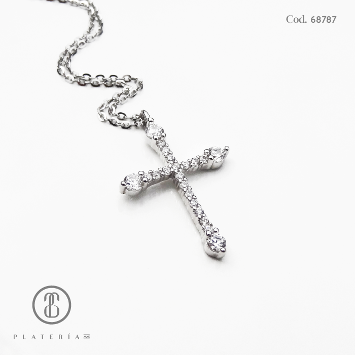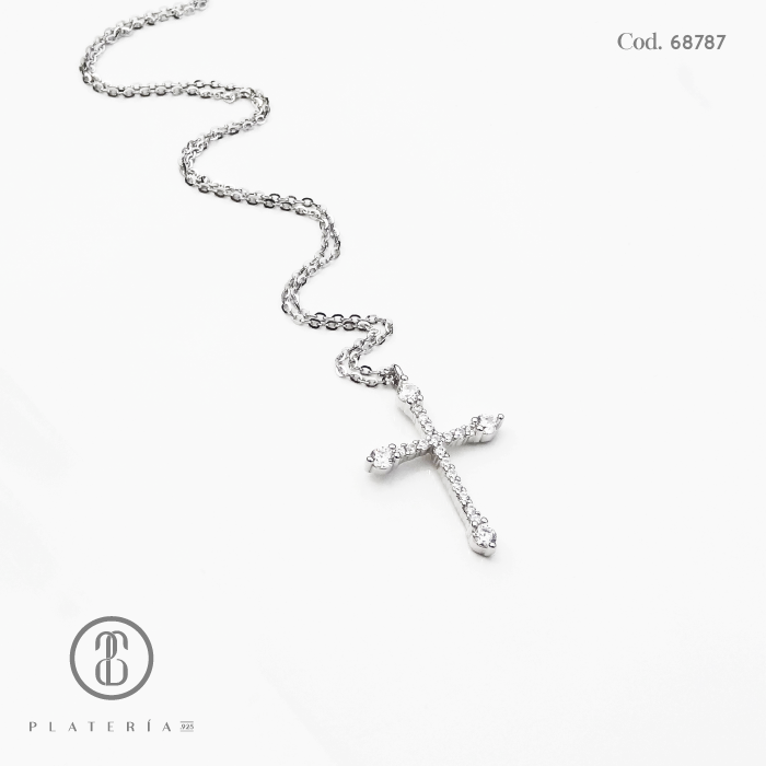 GARGANTILLA RODINADA CRUZ ZIRCON PLATA.925