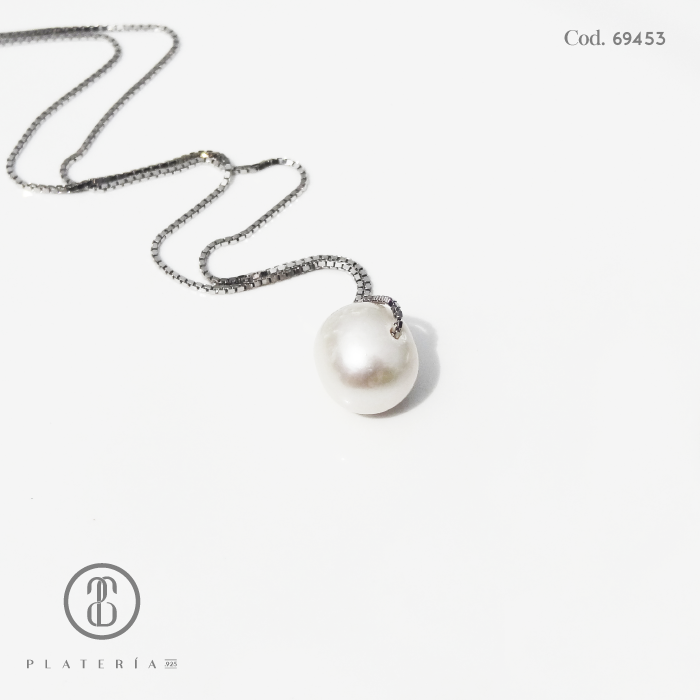 GARGANTILLA RODINADA PERLA CULTIVADA 8MM PLATA.925