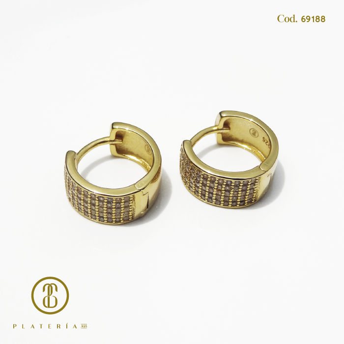 HUGGIE DORADO BAÑO14K 13MM PAVE PLATA.925