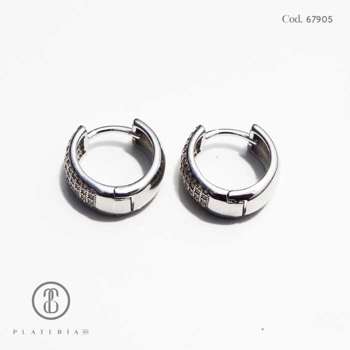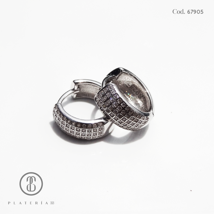 HUGGIE RODINADO 14MM PAVE PLATA.925