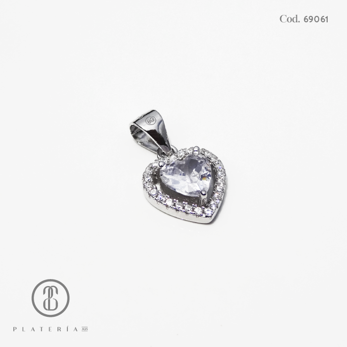 JUEGO RODINADO CORAZON ZIRCON PLATA.925