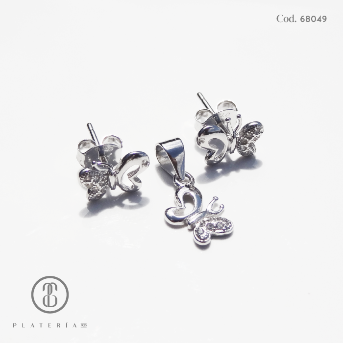 JUEGO RODINADO MARIPOSA PEQUEÑA PLATA.925