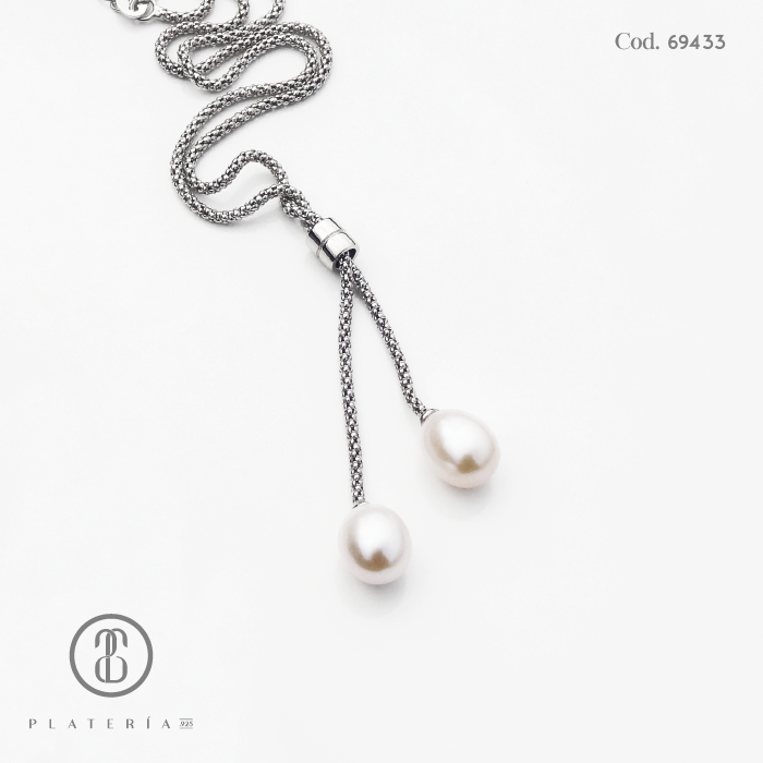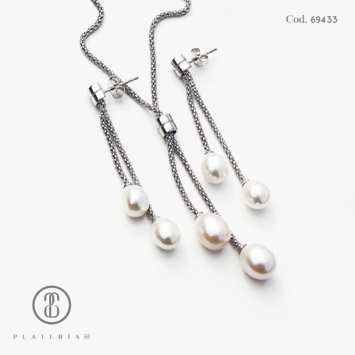 JUEGO RODINADO PERLA CULTIVADA PLATA.925