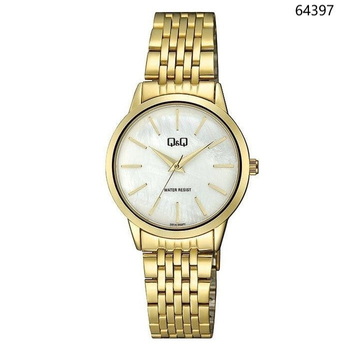 RELOJ QQ METAL DORADO FONDO BLANCO